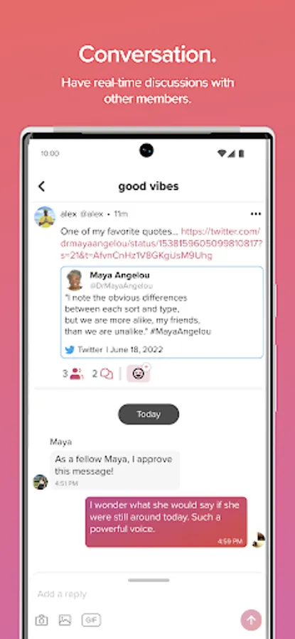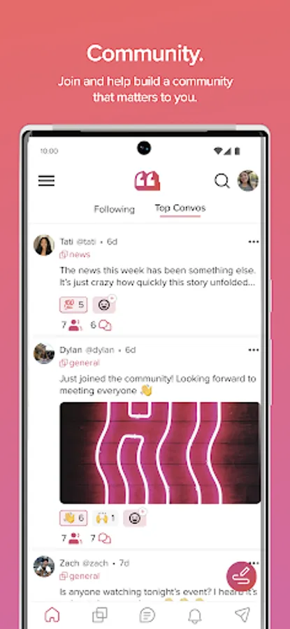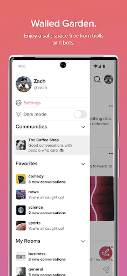 • Join topic-based rooms to talk about your interests, share news, and stay informed