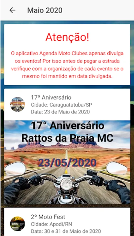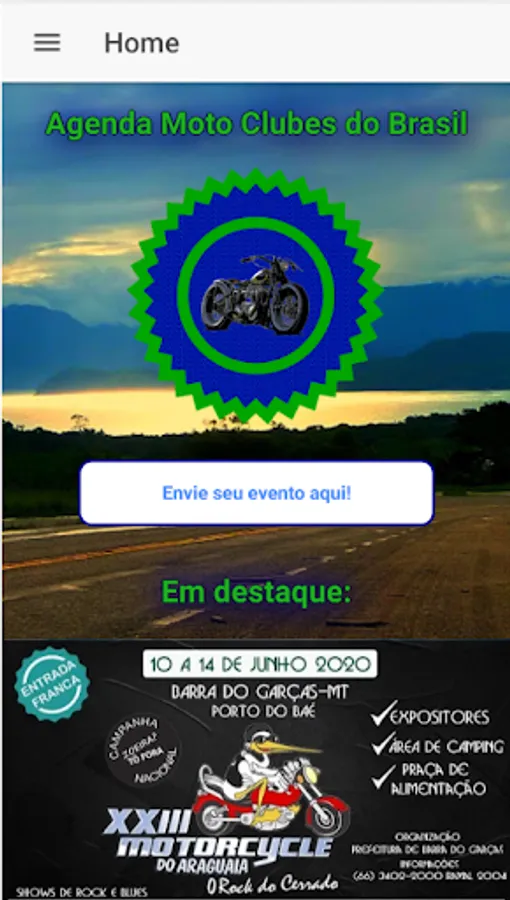 This application is the calendar of events of Brazilian motorcycle clubs and lovers of adventure on two wheels.