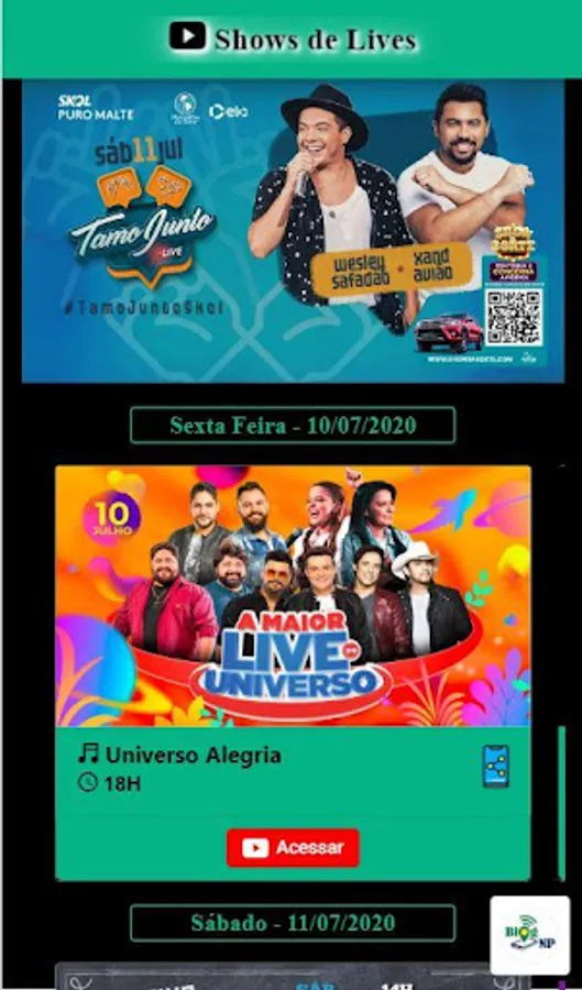 The Live Shows app aims to facilitate access to the lives that music artists are making on their digital platforms.