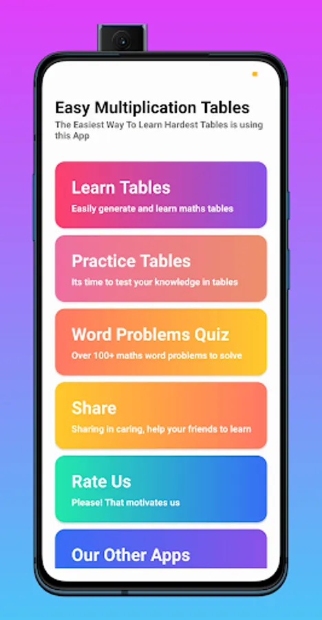 Easy Multiplication Tables app helps you to learn and grasp the maths tables in the easiest way. The multiplication Table app makes the whole process of learning of tables very easy for the young ones.