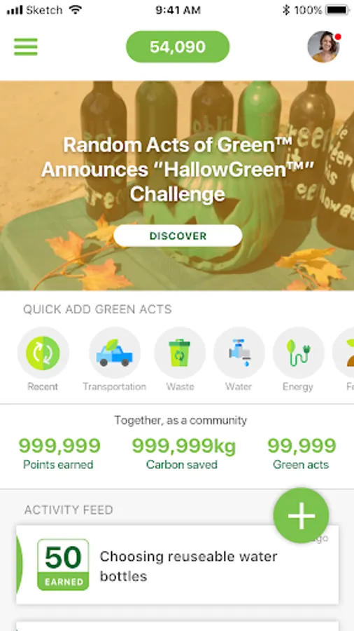 Our app will quantify the amount of greenhouse gas emissions reduced by each Act of Green.