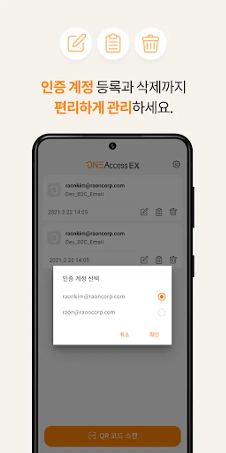 OneAccessEX app replaces authentication in various work environments with fingerprints, patterns, PINs, etc., without the need to remember ID/password. Select and use the authentication method you want on your own device.