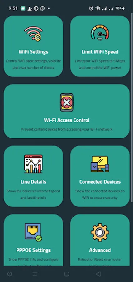 With the help of the Router Chef App, you can control your Router's basic settings e.g. :