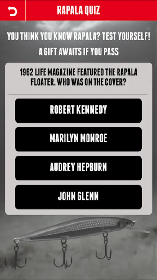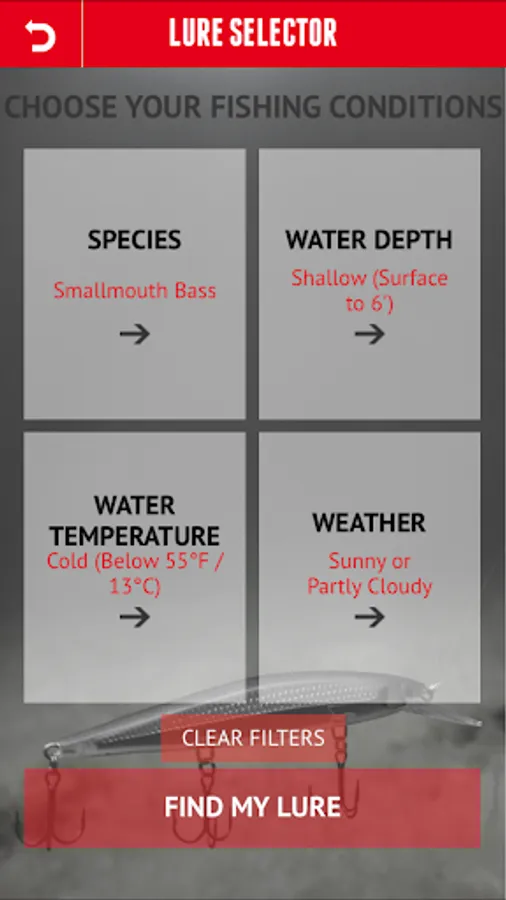 Ever wondered why the fish aren’t biting?...Could be your lure choice…as fisherman, we always tend to second guess, but now you can fish with confidence knowing the Rapala Lure SelectorTM has optimized the results based on species, weather patterns and other variables!