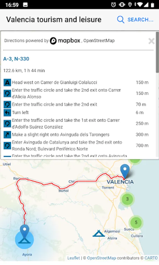 * Reach your destination. Once you select the point of your interest on the map, obtain with a single button the directions and the route to reach your destination.