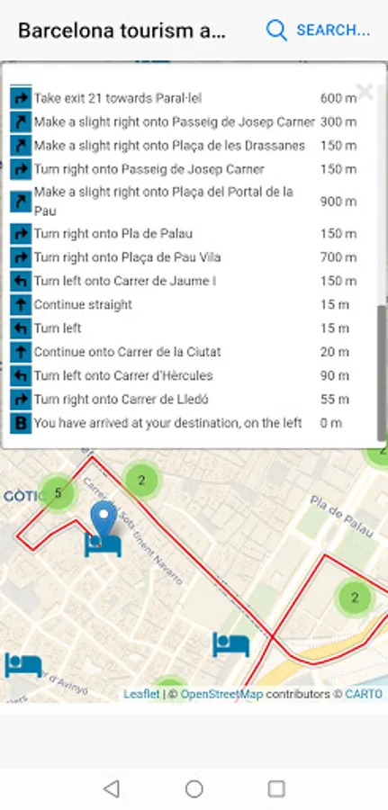 Once you select the point of your interest on the map, obtain with a single button the directions and the route to reach your destination.