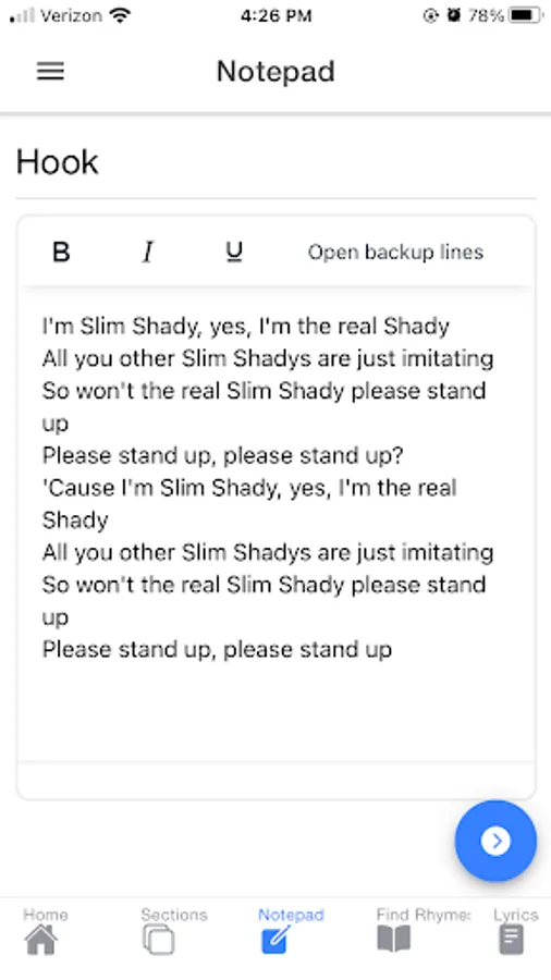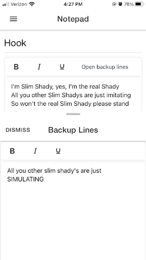 Way more than a fancy text editor, this app comes with an intuitive UI that supports the way rap songs are naturally structured. Tired of copying and pasting the same line over and over? Want somewhere to save backup lines? Then we've got you covered!