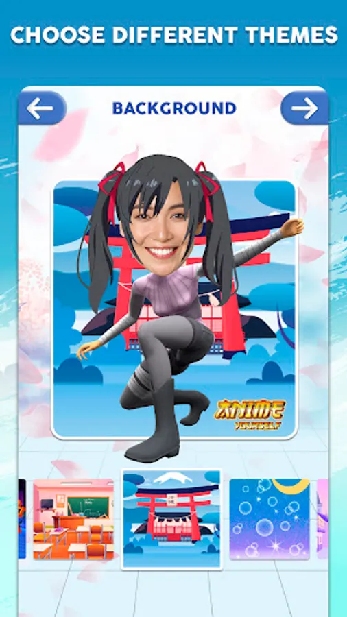 Download now and turn yourself into a dancing anime character. Select the best theme and get ready to dance like your anime crushes! Create a 3D model of your face and place it onto the dancers. Select between various original backgrounds, outfits and accessories. Generate your custom video, record yourself dancing and share it. Add your own dance moves to your anime videos.