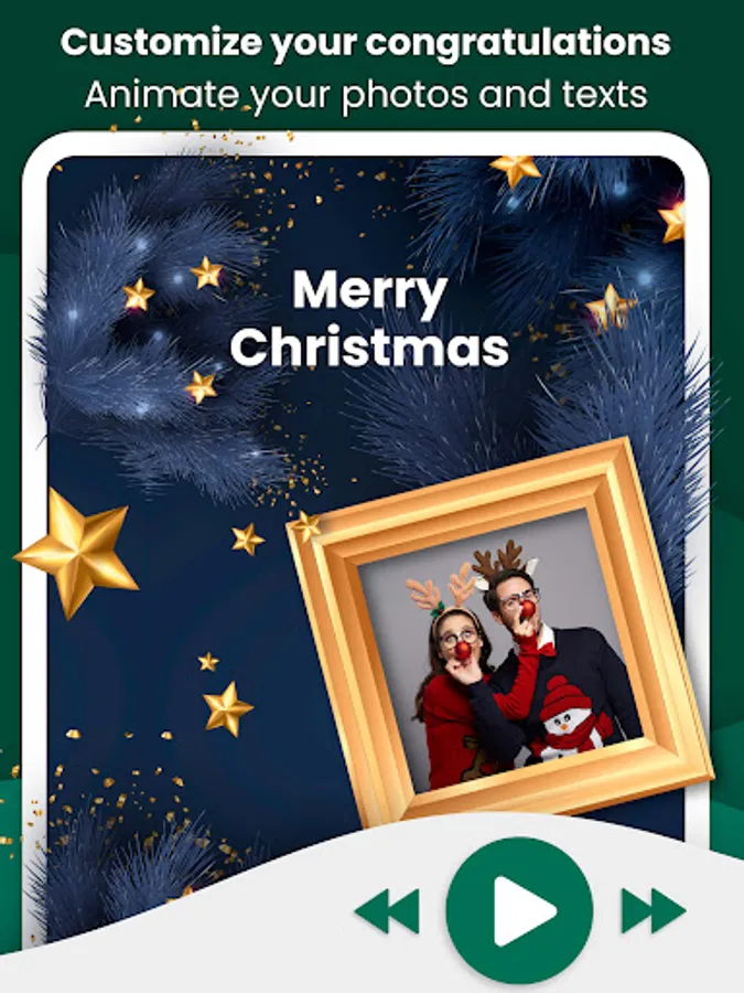 Forget about boring story videos. Use our Christmas story maker to turn your favorite photos into a custom video that will make your holiday season more special. Spread the festive cheer with personalized Christmas animations. Upload your own holiday photos to create a video greeting ecard and explore gif animation templates.