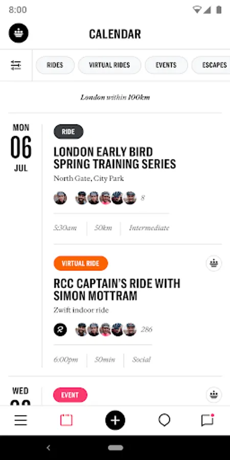 Discover nearby Rapha Cycling Club rides and events wherever you are in the world, with the official RCC app.