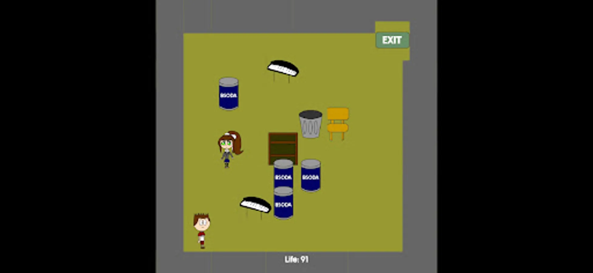 This is a game where your objective is to escape from Baldi and Monika by taking Rapha to the exit door. You slide across the screen to move the character.