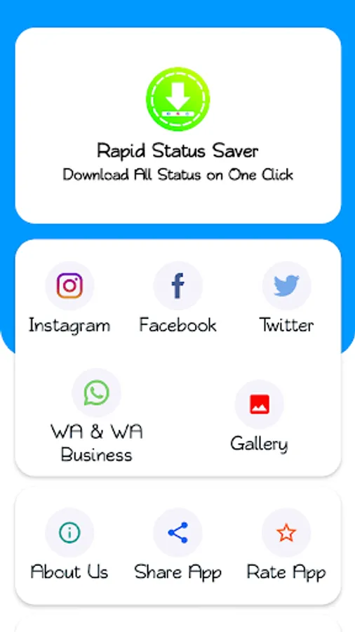 Rapid Status Saver app is very helpful for the peoples who want to save their favorite images and videos from WhatsApp, Instagram, Twitter & Facebook.