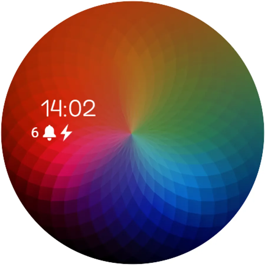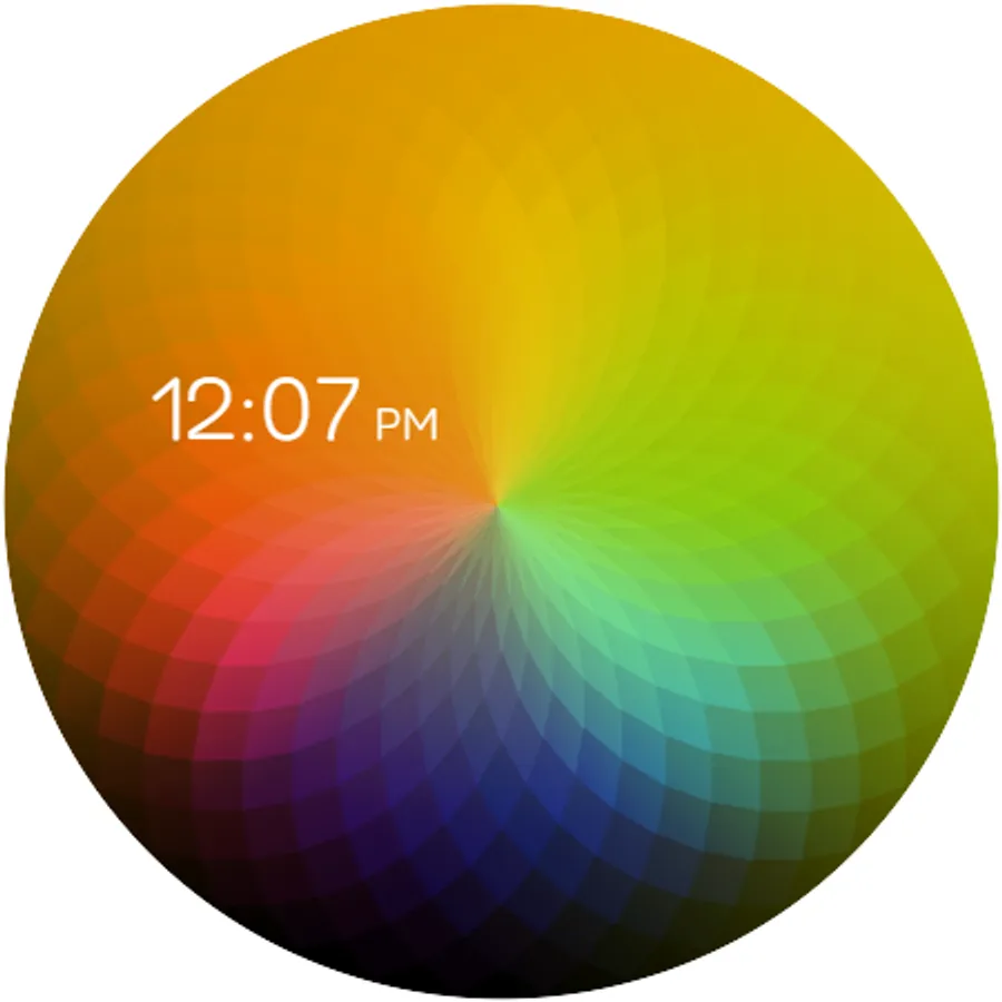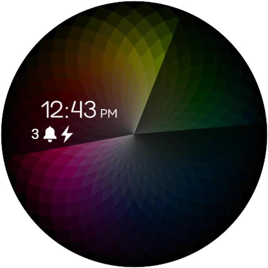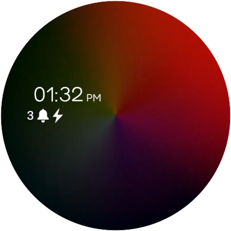 Eye-catchingly designed with a simple spectrum of color effect that offers both a gyroscopic wrist-movement, or a slow and steady transition. This watch face is both fashion and functional.