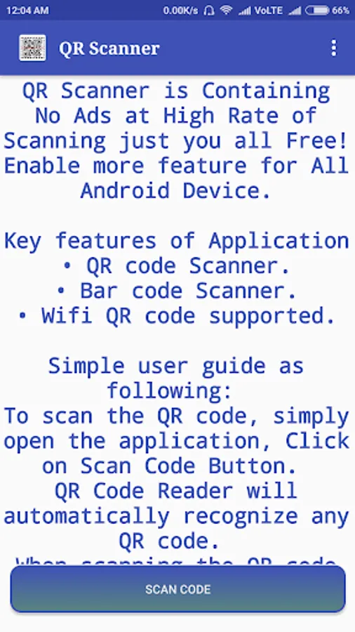 To scan the QR code, simply open the application, Click on Scan Code Button.