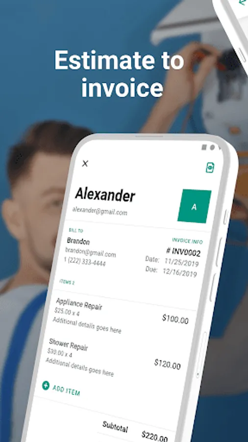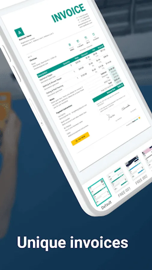 With our Invoice Maker, small business owners, contractors and freelancers can invoice customers in no time and send professional PDF invoices with ease. It's the perfect invoice app to help you stay organized and run business on the go.