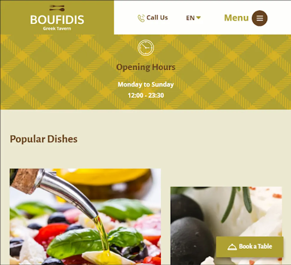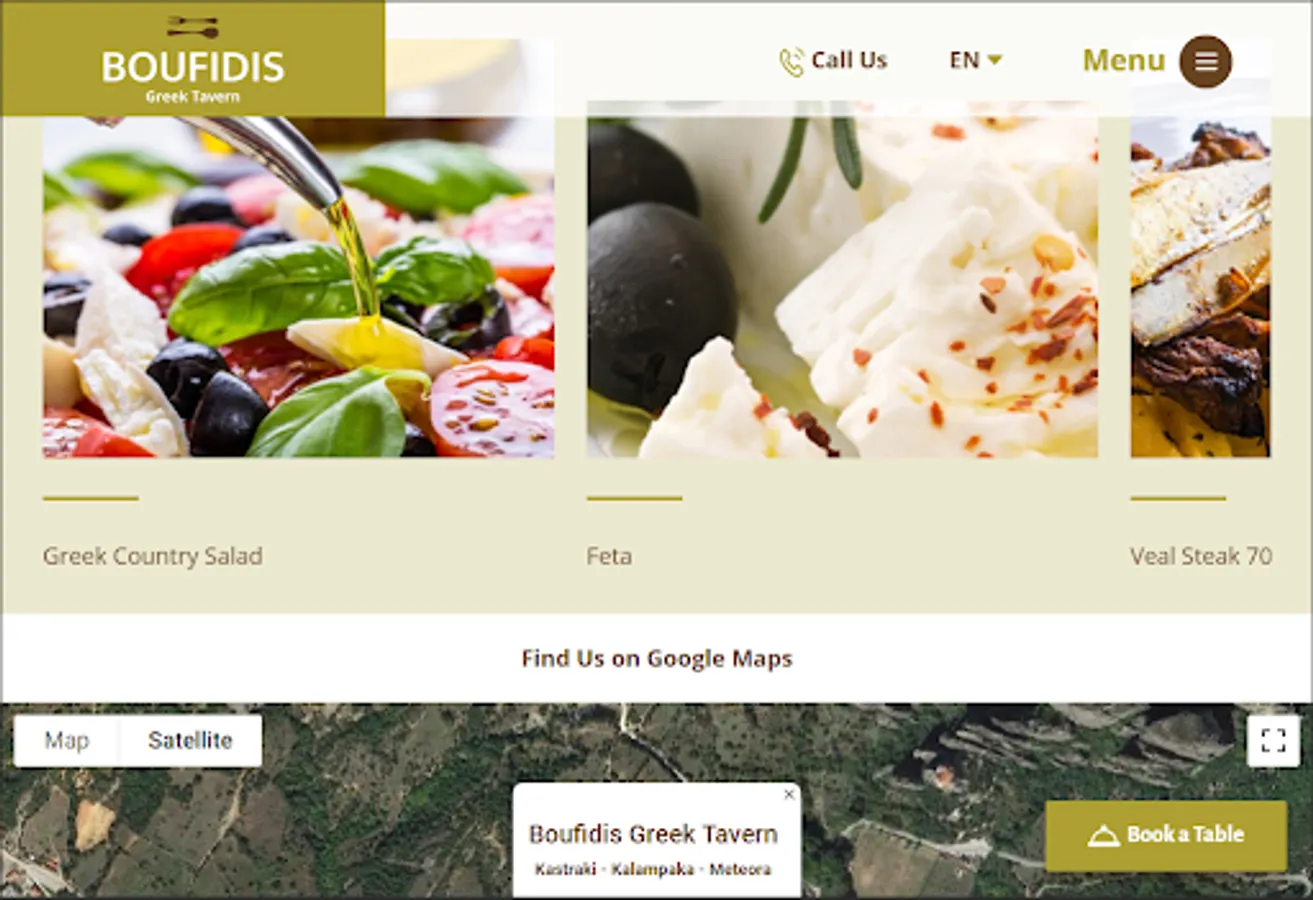 The traditional, family-run Boufidis Greek Tavern offers fine local dishes, all made from fresh raw materials.
