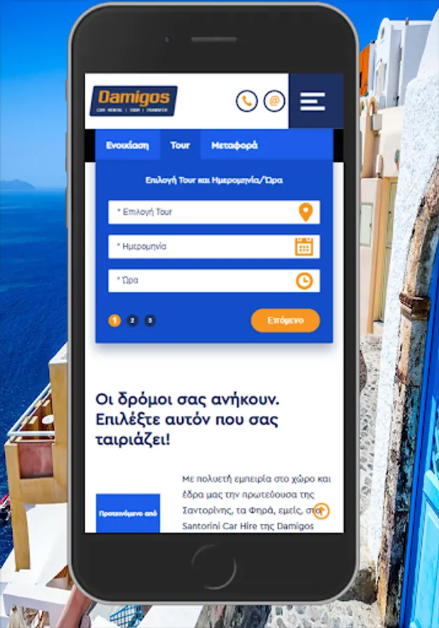 Santorini Car Hire by Damigos rent a car official website is the most reliable online mobility partner for car rental and car hires to rent a car in Santorini island Greece. It is located in the capital of Santorini, Fira at a key spot (next to the cable car) for your better convenience.