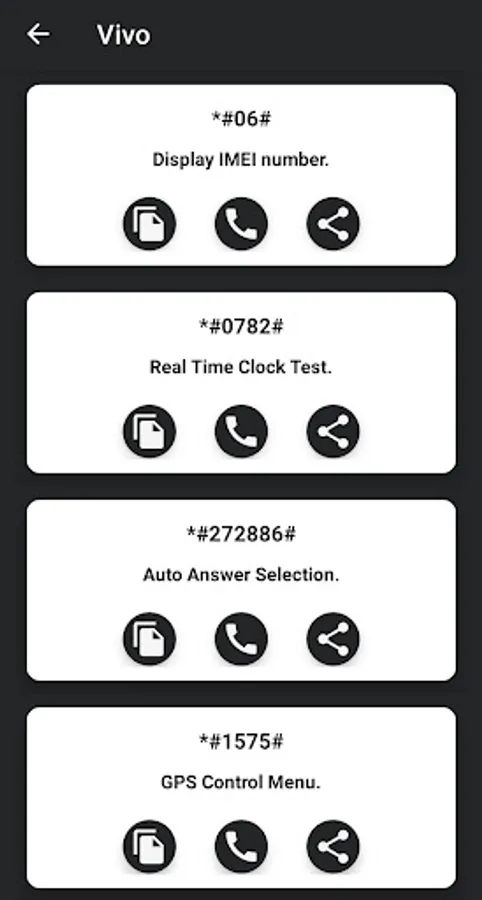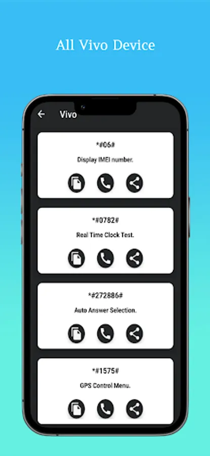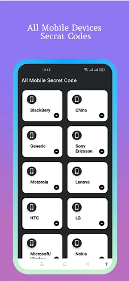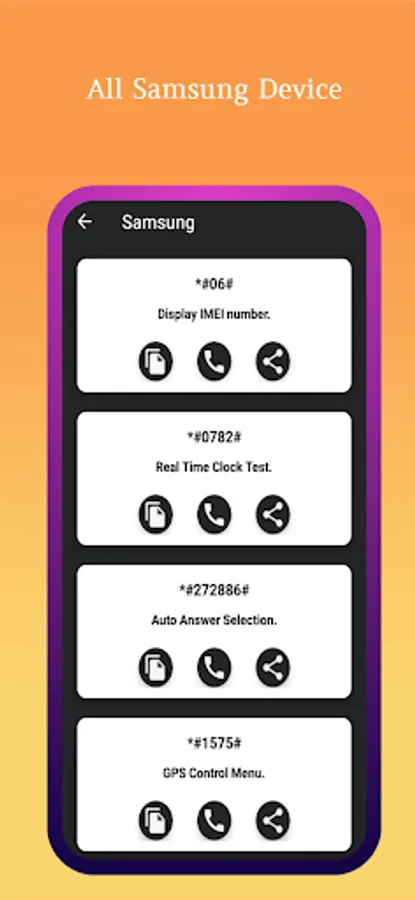 All Mobile Secret Codes is the ultimate solution for all your mobile phone secret codes. The App contains common android secret codes include Network, Hard reset any device, Password recover, Password forgotten, Software & WH info, auto answer selection, RF Band Selection, Camera Pixels, WLAN Mac Address, Display CSS Code, Bluetooth, WLAN test, Firmware version information, factory tests, PDA, display the IMEI number, Super Mode, Service Menu, Check Update, Reset Device, Unlock the device, Recover Forgotten pattern, Phone hidden codes, Engineering mode, GPS test mode, Machine information, Software Information, Hardware Information, Test Photograph RGB and much more. Now you can Discover the secret world of your, Android and other OS base mobile! Devices. Some code of them may not work on specific devices, but you can still try them because their manufacturer does not allow them. When those codes are typed manually from the phone dialer or you can copy this code with long press on code and paste it on clipboard. There is also Functionality in the application to share it with Facebook, Twitter, WhatsApp and other many more Social Apps. Unlock the full potential of your phone with All Mobile Secret Codes. Discover the hidden features of your phone with our comprehensive collection of secret codes for various mobile brands and models.