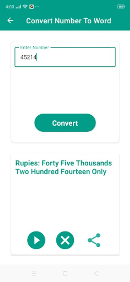 Number to Word Conversion app is convert number into English Word. It is useful for filling check writing numbers/text, filling receipts and for student also.Easily convert Number to Text/Number to Word online.this app convert binary to hexa decimal. it support All Unit Format.