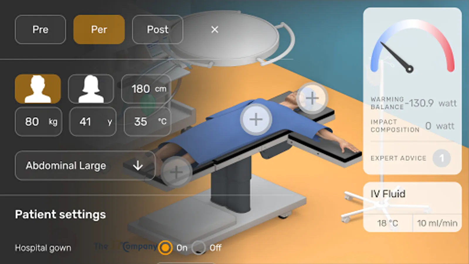 Virtual37 is a Temperature Management Tool, developed in order to support health care professionals in maintaining normothermia and using solutions of The Surgical Company PTM