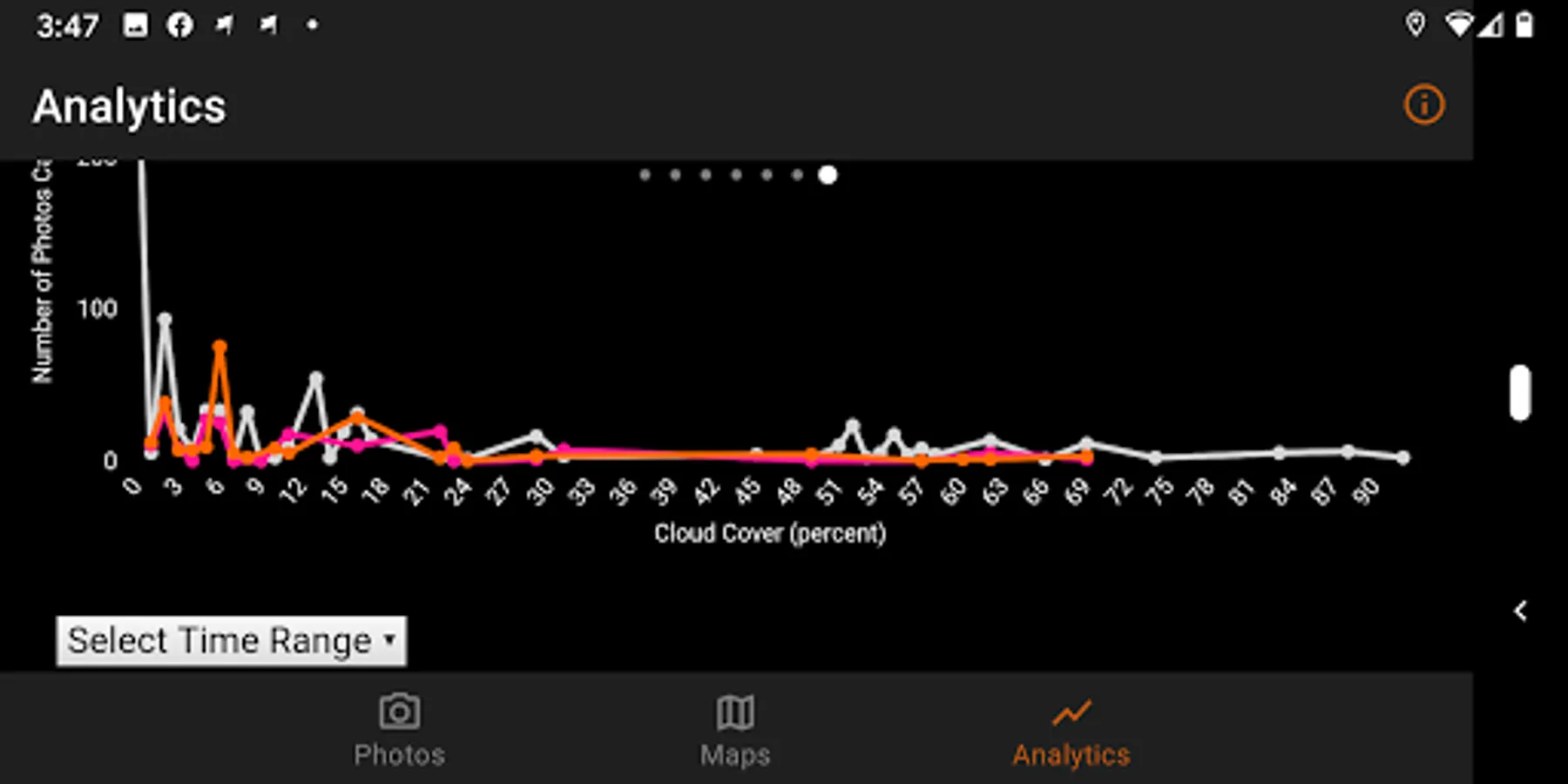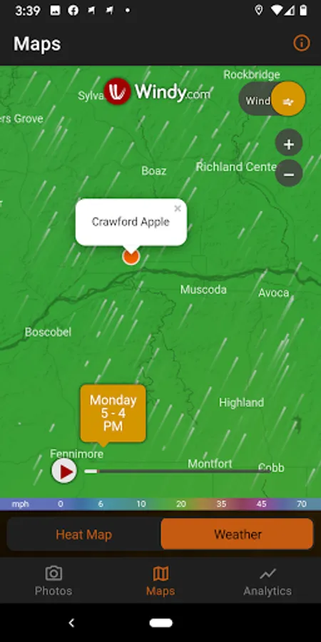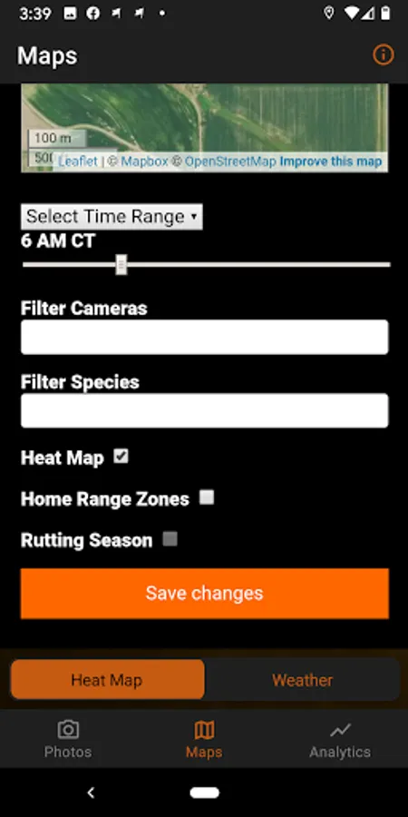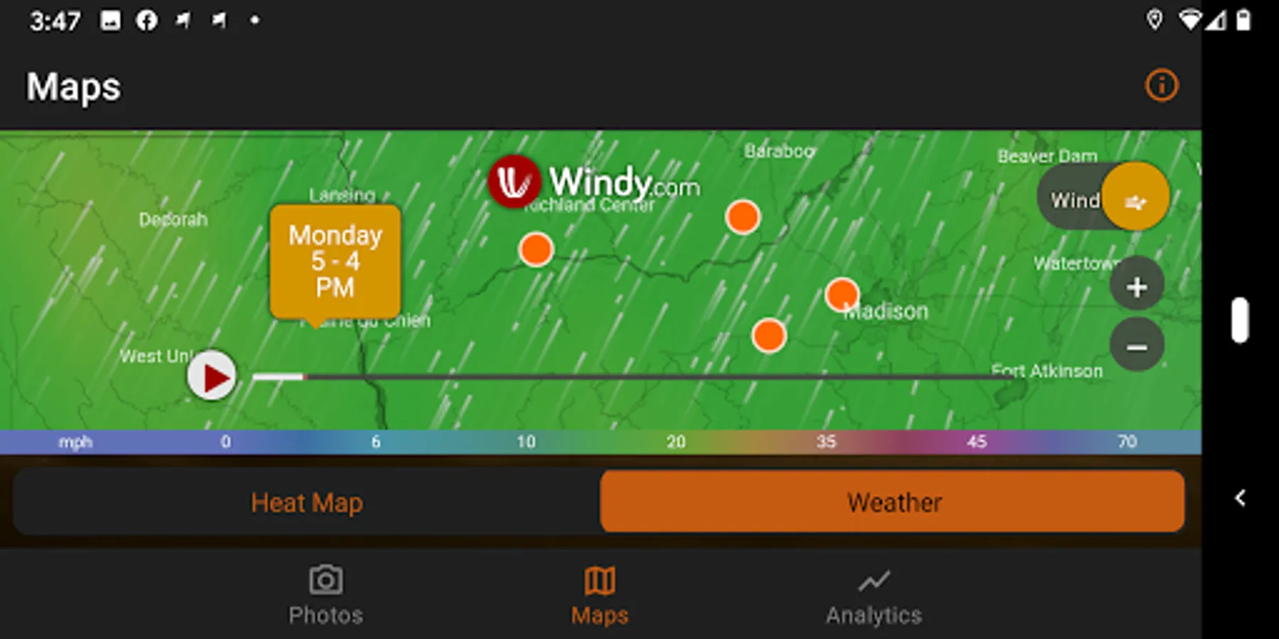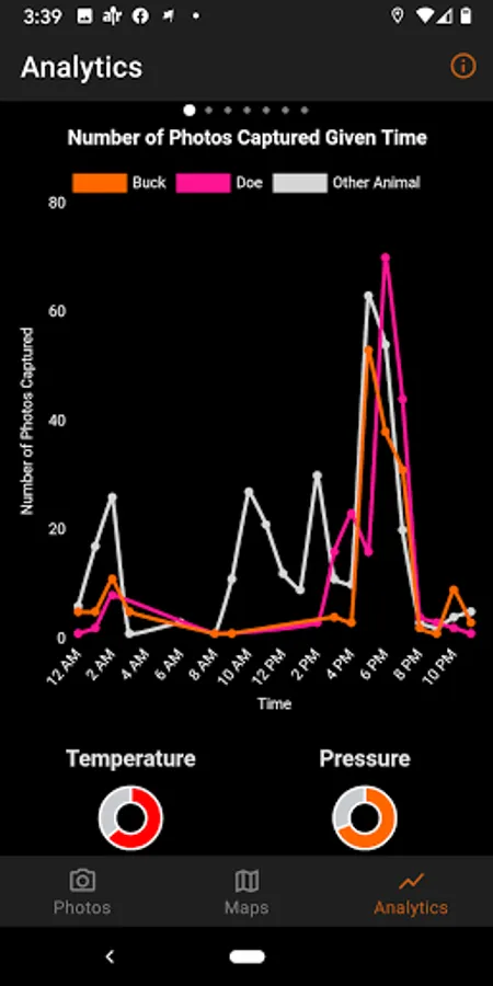 A paid subscription includes access to hunting insights and analytics in the form of Heat Maps, Home Range Maps, Weather Visualizations, and a variety of Charts depicting animal movement based on imported trail camera photos and associated metadata.
