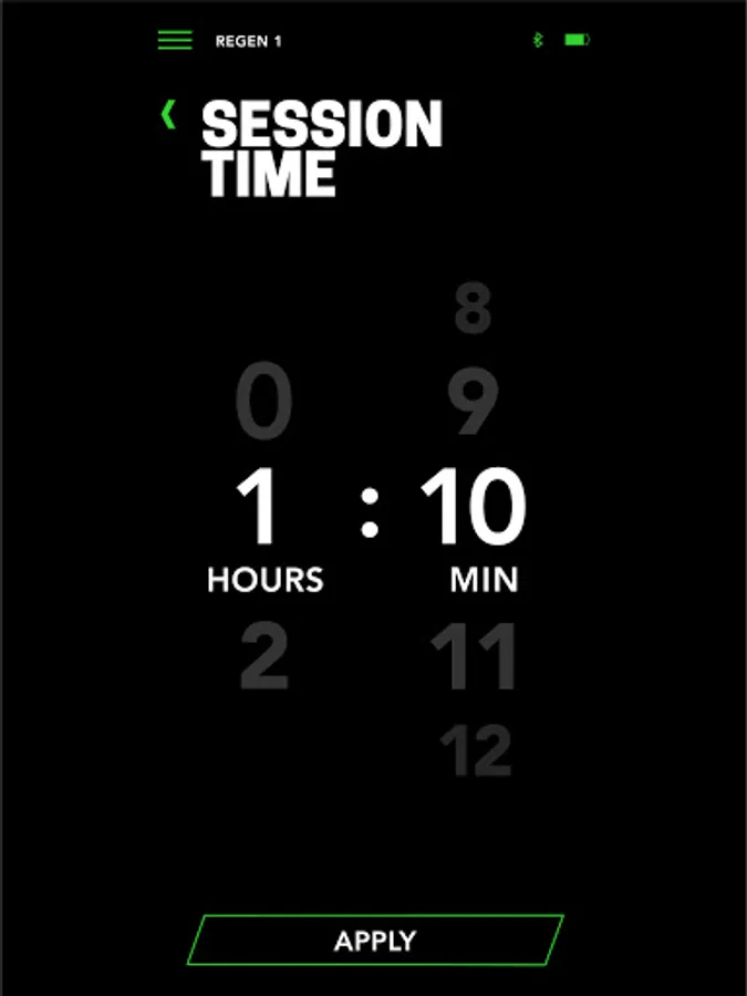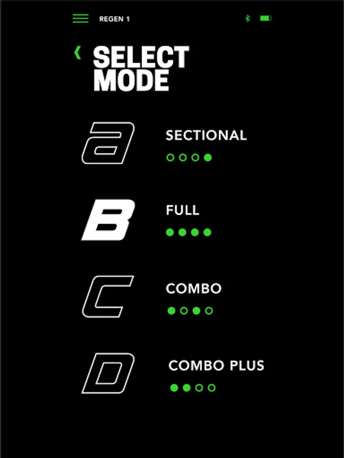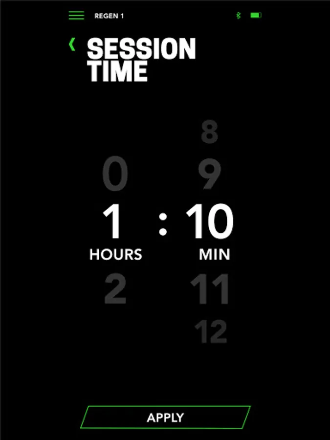 PROGRAMS: Save, edit, and update PROGRAMS in the Rapid Reboot app when paired to a REGEN control unit. Quickly apply those PROGRAMS to future sessions without having to readjust all the various settings.