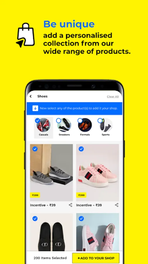 On RapidShop you can sell from a vast range of fashion categories such as Men Sneakers, Loafers, Women Sneakers, Men Formal Shoes, Slippers and Flipflops, Men Sports Shoes, Women Sport Shoes, Men Casual Shoes, Sandals and Clogs, Flats and Bellies, Sports Clothing, Heels and Wedges and what not !