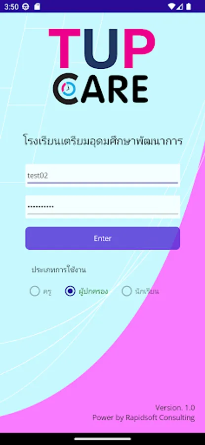 TUP Care is a mobile application developed by Triam Udom Suksa Pattanakarn School that provides school information such as student and teacher time attendance, leave requests, and class check-in.
