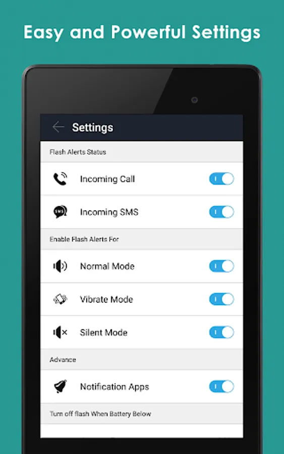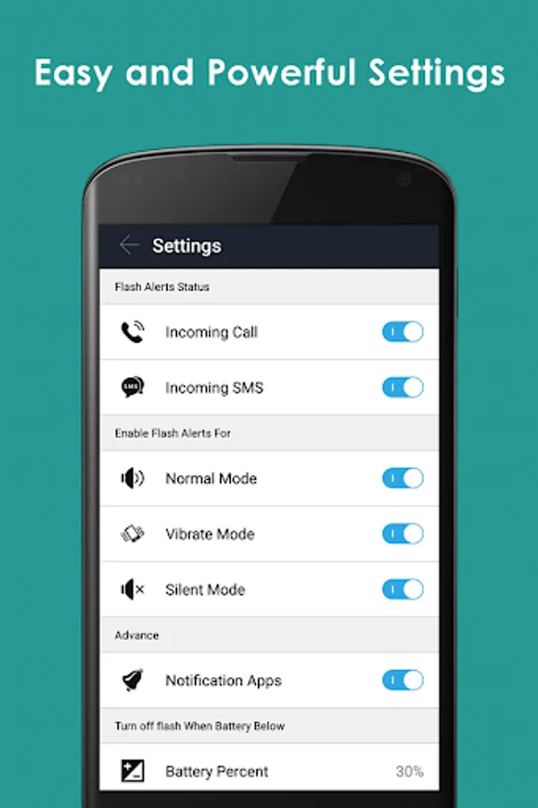 The LED camera flash will blink when mobile phone receives a Call, Message or Notification of all apps. You can set flash interval, easily adjust blink frequency to be slow or fast from app settings. You can turn on or off service by manually over different sound modes like Normal, Vibrate or Silent mode.