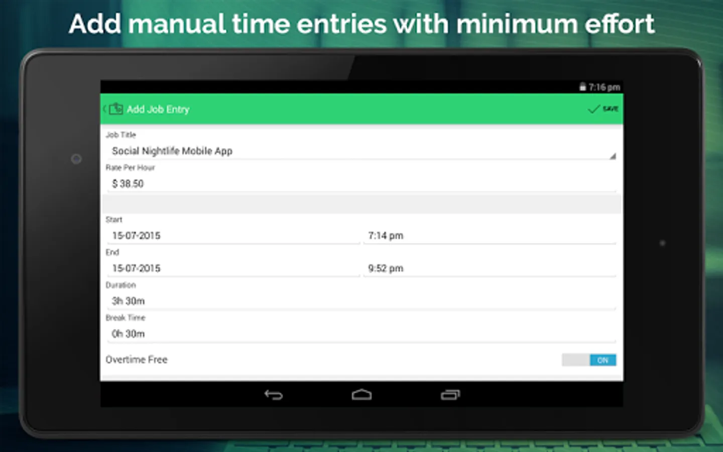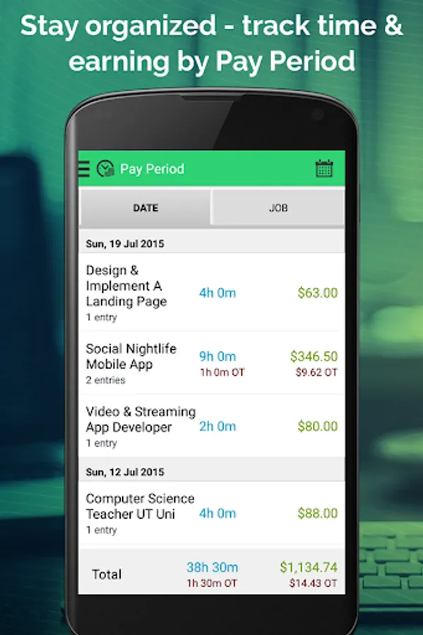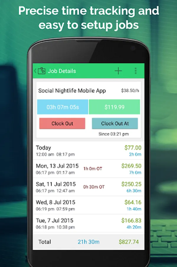 • Quickly add multiple jobs and track real time hours/earning salary