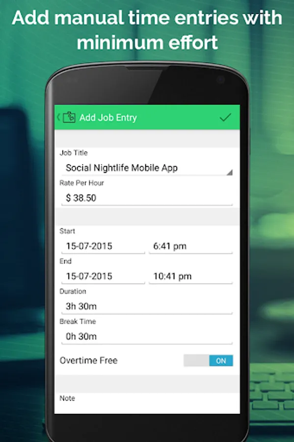• Add notes to each entry with break time and deduction amount for each job
