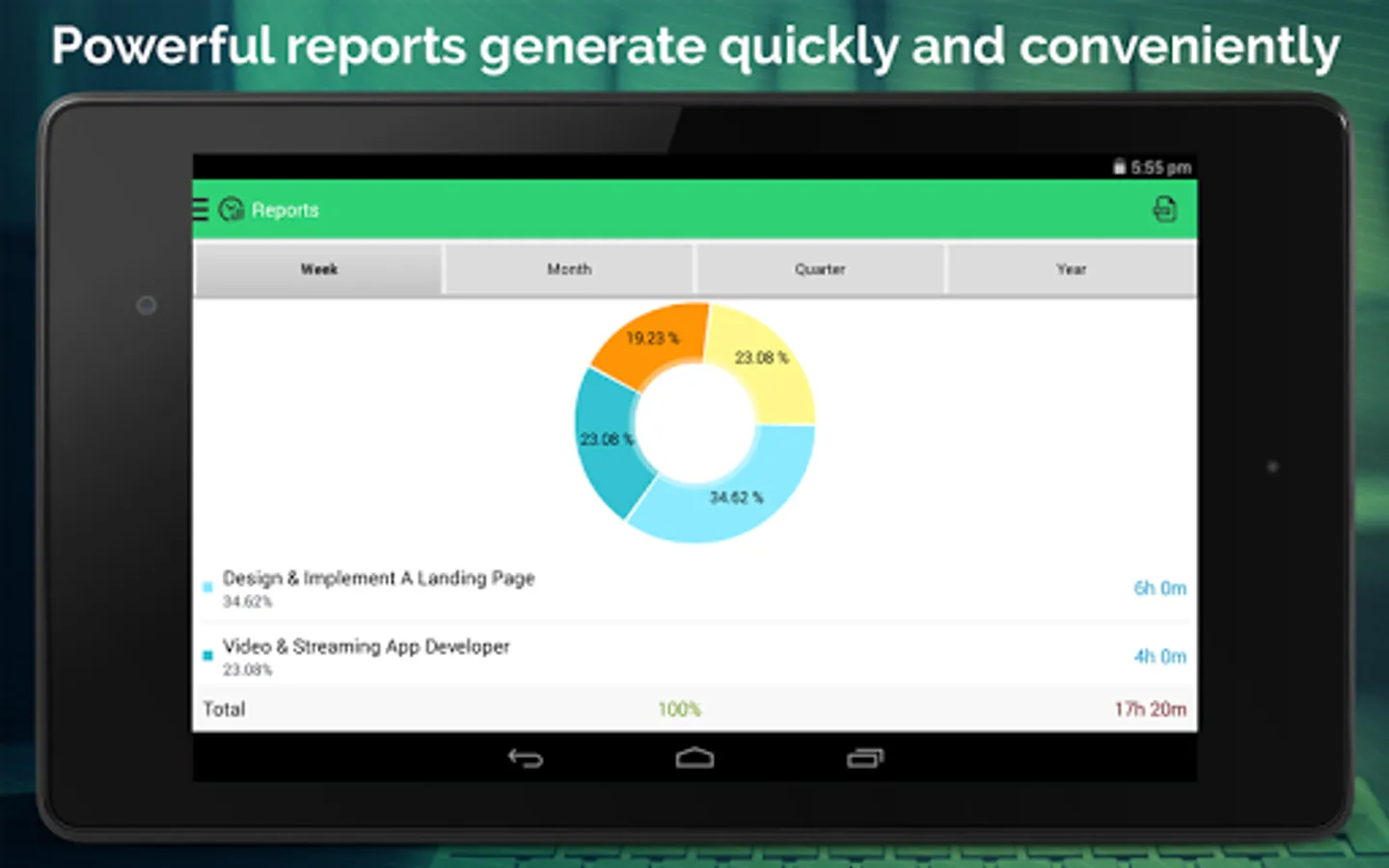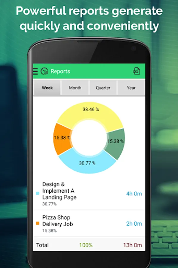 It gives you exclusive reports by weekly, monthly, quarterly and yearly. It calculates your earning based on the defined pay period for multiple clients or jobs. You can also export your work logs by email in format of PDF, CSV or HTML.