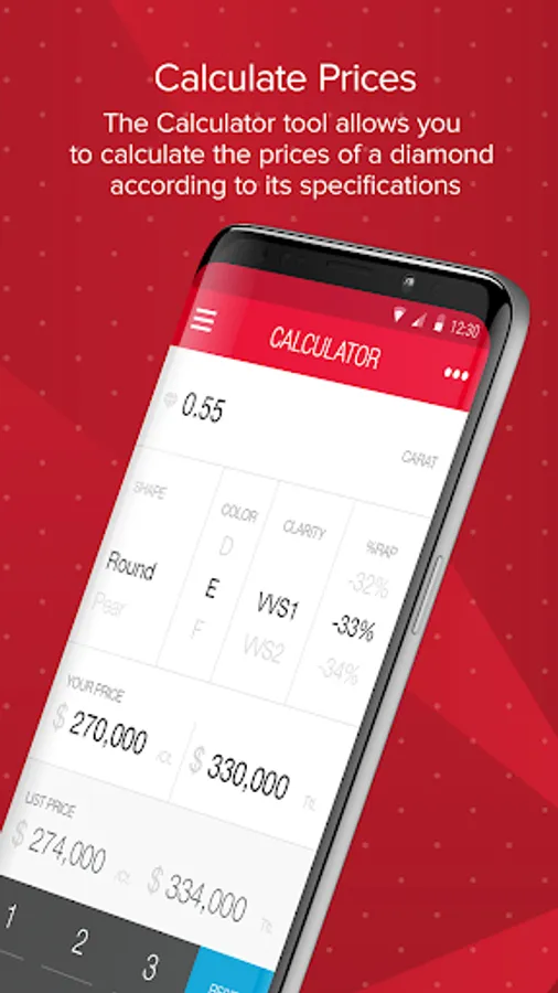 • Find Prices - The easy-to-navigate Diamond Price Calculator gives you access to diamond price information on the go.