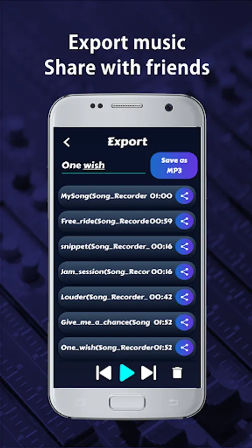 5. Share your song via the share button with your friends or export it to the phone storage.