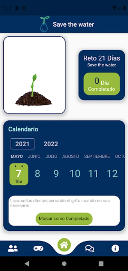 Application designed for the hackathon social media maker the hidralia challenge, which is based on making adolescents aware of water saving and that it is incorporated into their day to day through games and a 21-day challenge