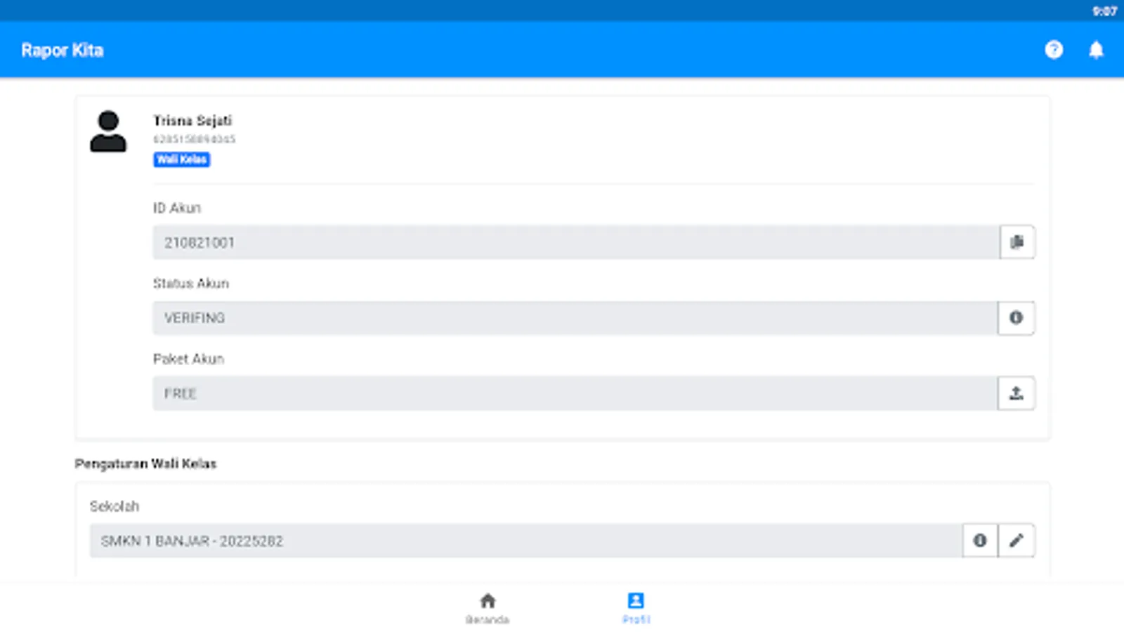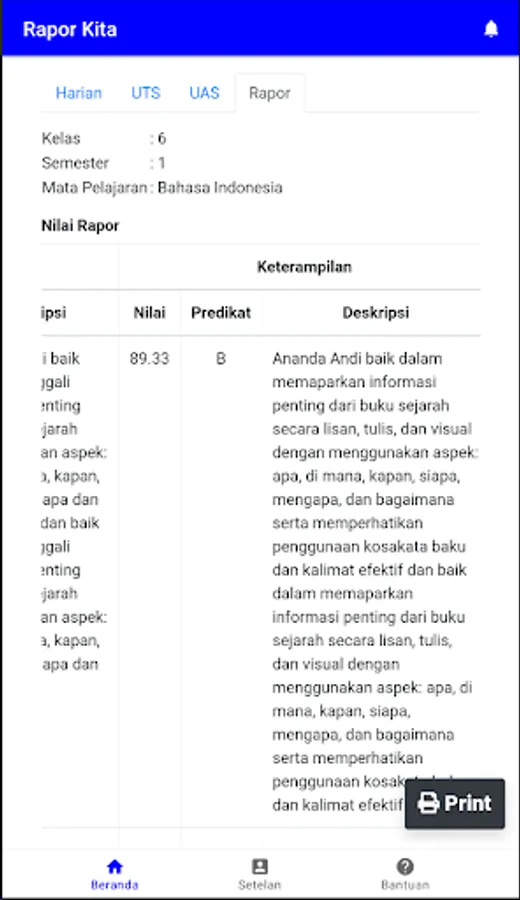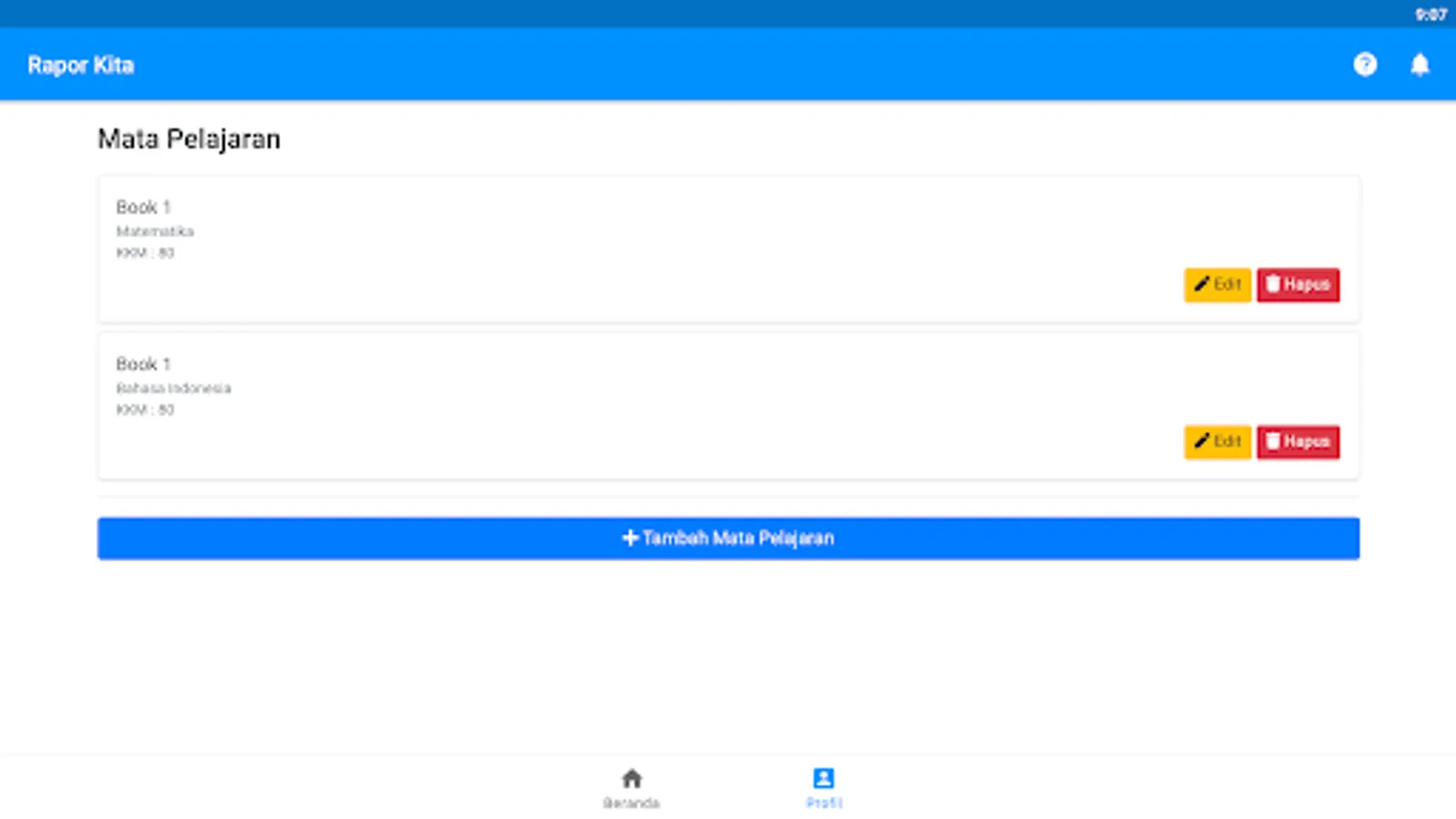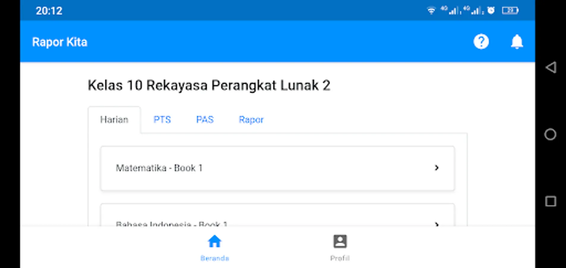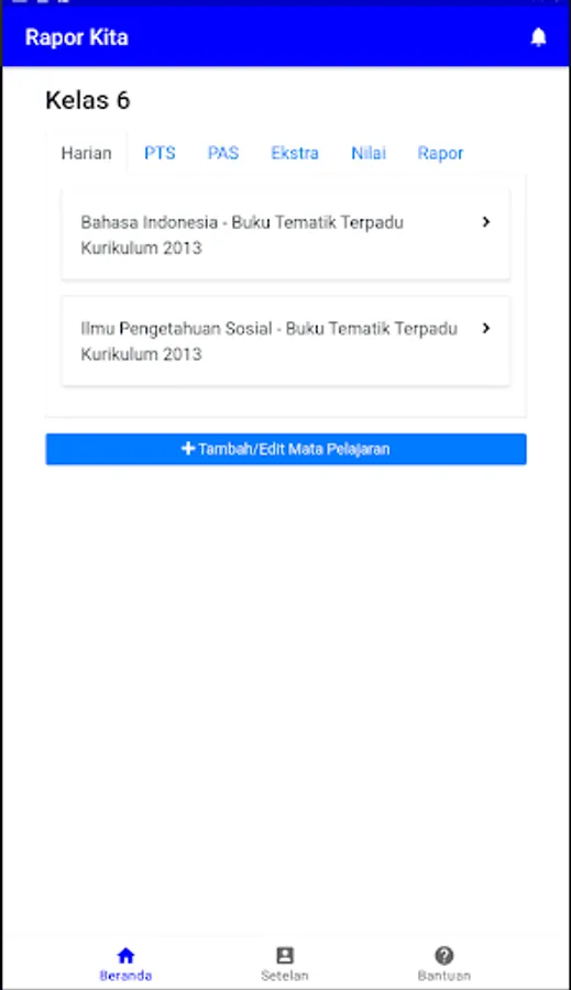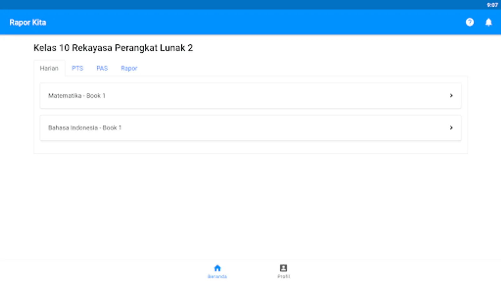 RaporKita is an application for assessing student report cards based on the 2013 Curriculum for SD/MI, SMP/MTs, SMA/MA/SMK, used as a teacher companion in teaching and filling in student scores so that it automatically produces K13-based report cards that can be printed directly or downloaded.