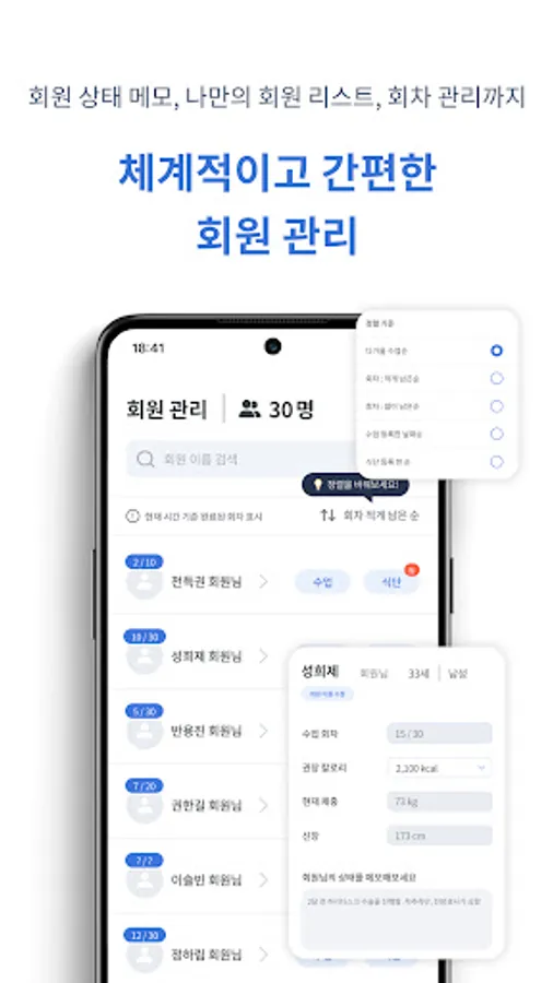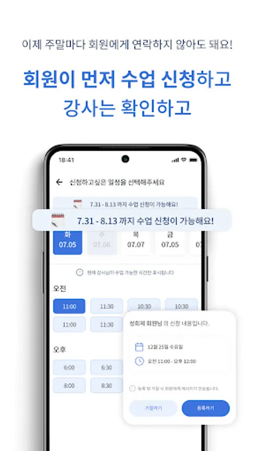 1. Schedule management in which members who do not need to contact the member first apply first, and the instructor (trainer) checks and registers