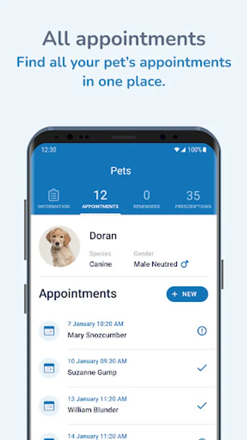 In order to use this application, you will need to have your email address registered with a participating veterinary office using AppointMaster™ services. Ask your veterinarian today.
