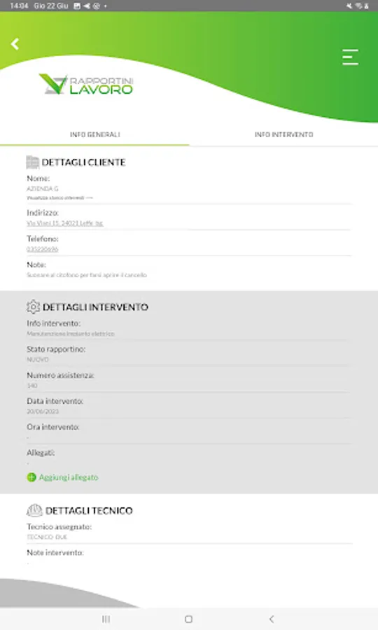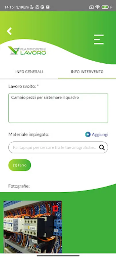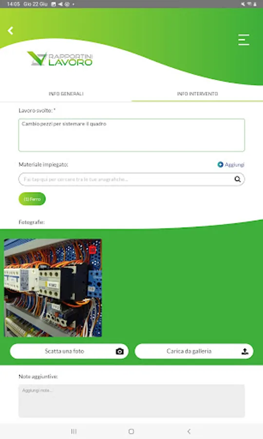 For each report it is possible to attach images and photos taken directly from your device during the intervention, visually documenting the work carried out by your technicians.