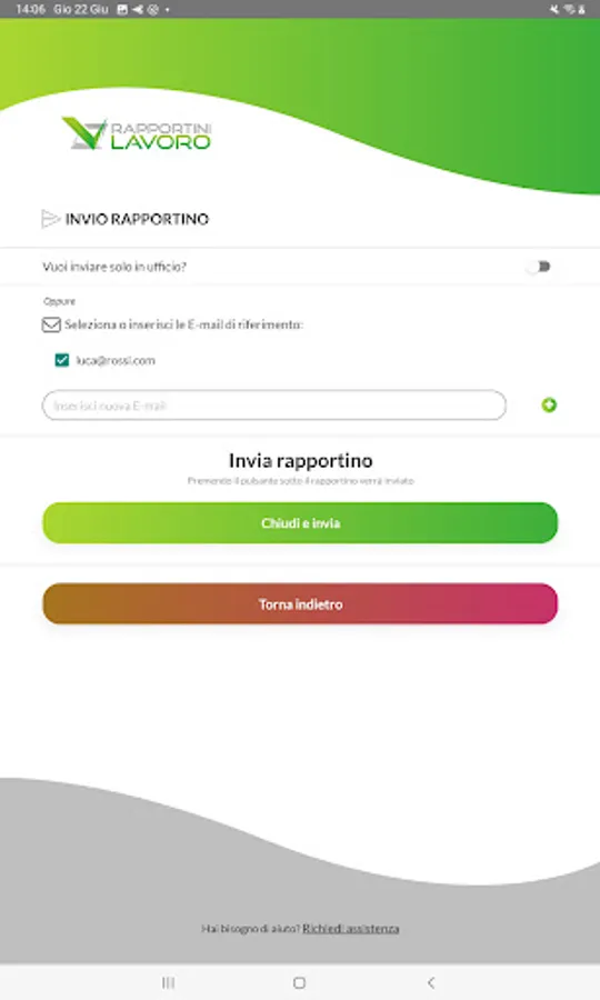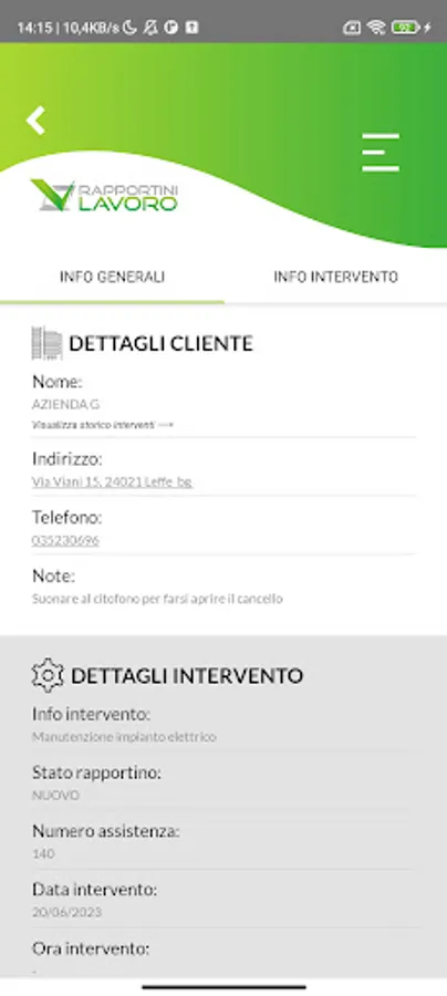 At the end of the completion of the intervention, the report will be archived on the server and it will be possible to view it at any time. Once concluded, you can decide whether to keep it only in your database or send it via email to your customer as well.