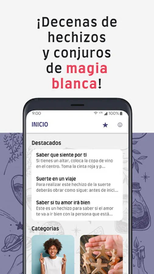 🔮 These are some of the spells that are included in the app: Material abundance, clean bad vibrations, enhance and protect your savings, colored stones of luck, rituals to let energy fly, prayers for love, remove envies or baths to eliminate negative vibes and energies ... and many more