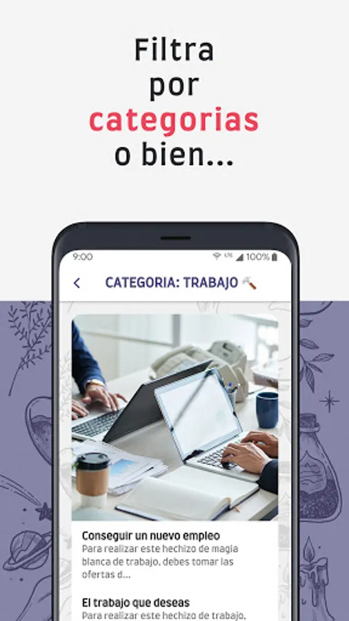 🪄 The recipes that appear in this app are categorized by theme, from love, to protection or money . From the same home screen you can quickly and easily access information as well as display several featured articles related to white magic.