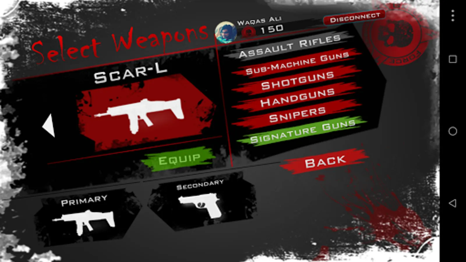 You have the choice of different weapons. Visit the armory section to select the Primary and Secondary weapon combo. If you run out of ammo in one of your weapon just swipe on the weapon icon to switch.
