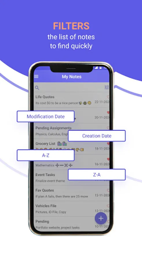 Filter notes with best options like creation date, modification date, alphabetically: You can filter or sort out your saved notes using categories such as date or align them alphabetically as per your ease.