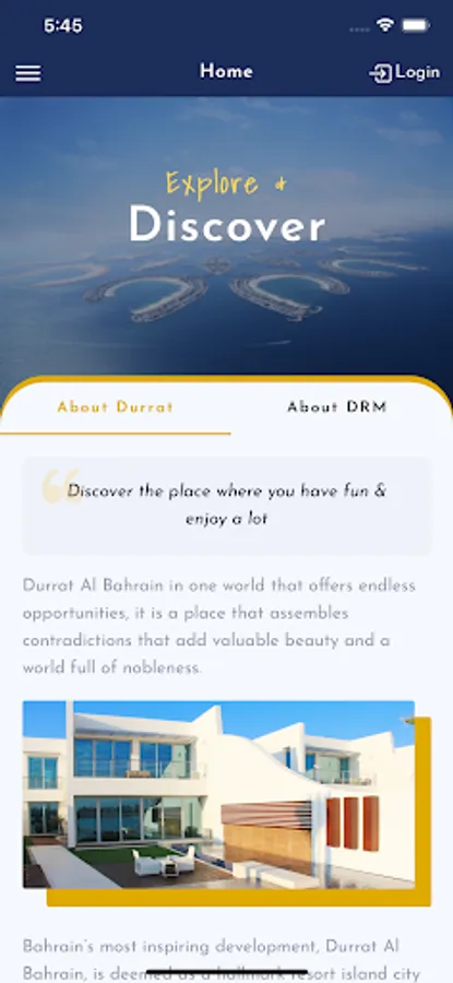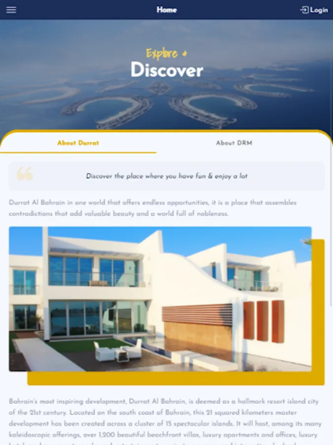 Durrat Resort Management Mobile app provides public information about Durrat and facilitates the residents with access to DRM eServices.The following eServices are available in the Mobile App: