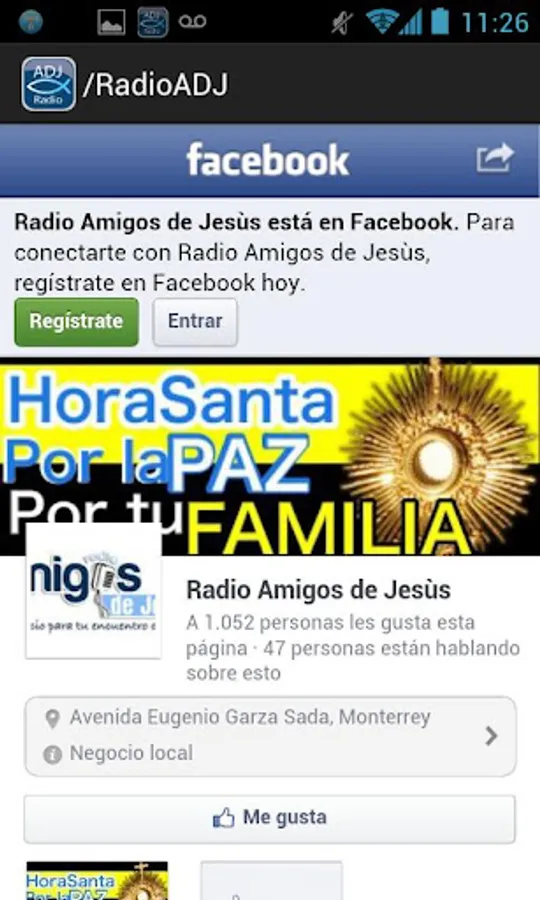 We thank you for downloading the app from Radio Friends of Jesus (Radio ADJ) where really the ultimate goal is to have an encounter with God, broadcasting 24 hours a day prayers, live shows, reflections which will make me feel accompanied on your way to God's love.