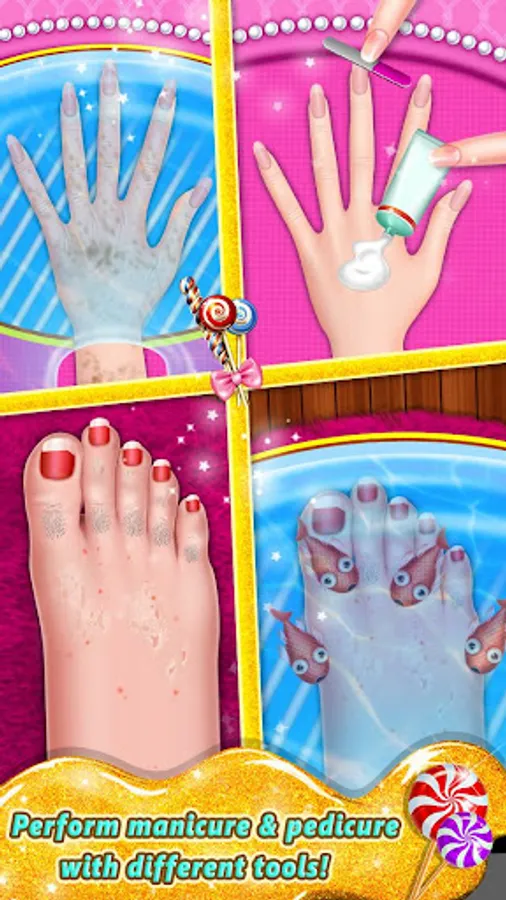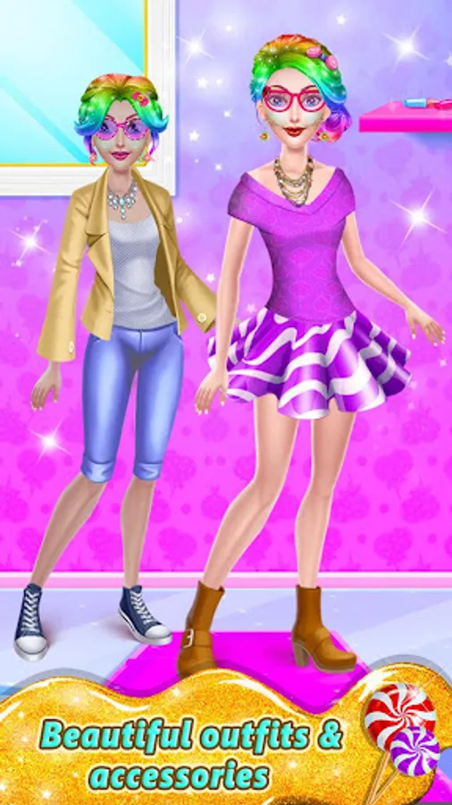 We got plenty new things for you! You will come across various accessories with clothes, hairstyles, cosmetics, jewelries and makeup. Curious enough? Come check beauty salons app and design candy styles with your imagination. Capture all your candy fantasy happy moments and keep them inside your gallery. Visit teen beauty shop to have hairstyle makeover, beauty treatment, candy nail art salon, manicure, pedicure, nail paint and much more! Inside this games we offer various eye candy dresses to wear in fantasy land, chocolate candy makeover, dress-up, doll dressing and more!