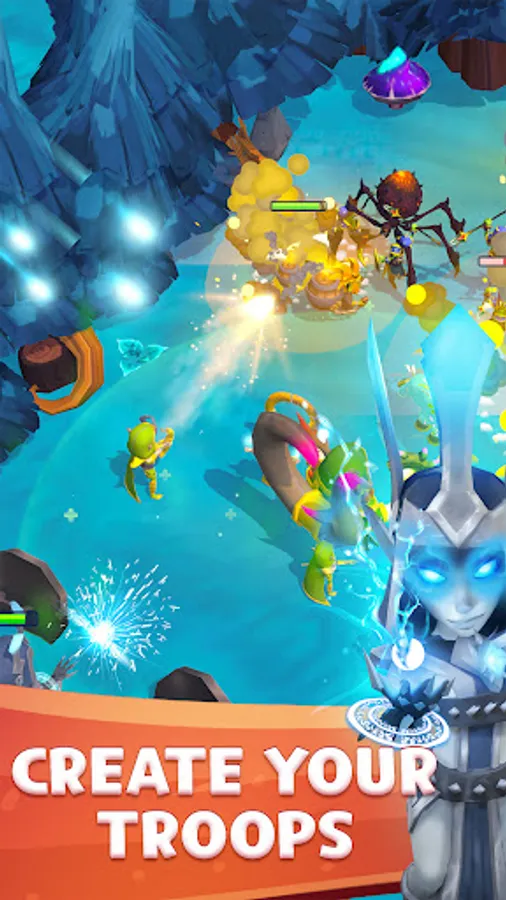 There are more than 35 heroes fighting for you in the battle arena. Choose your tactic with Golem, Archer, Mage, Crazy Goblin, Knight, Wizard, Barbarian, Monster, Rifleman, Dark Lord and many more, be the winner of the battle and save the world!