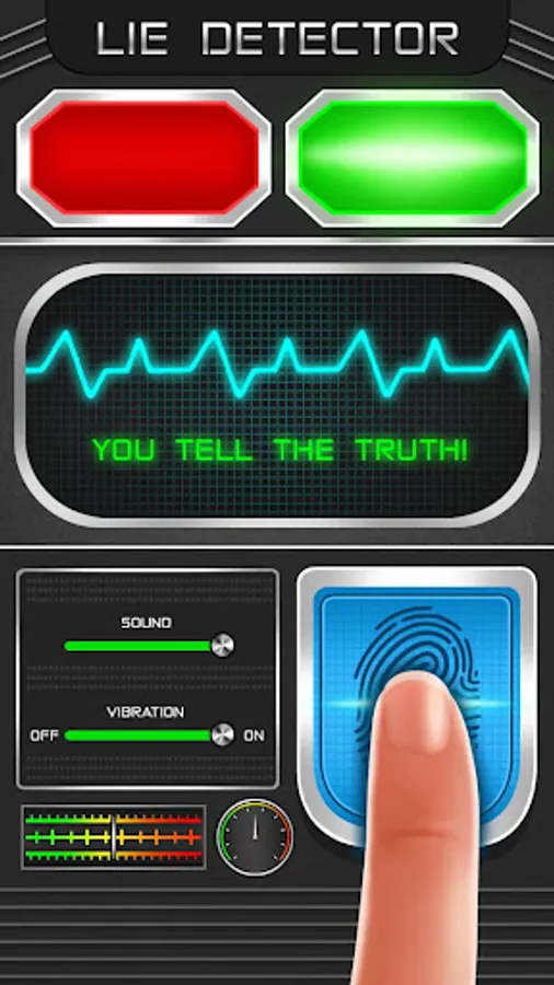 * Tap and hold your finger on the lie detector simulator machine. After detection, Lie detector will test lies based on your finger print.