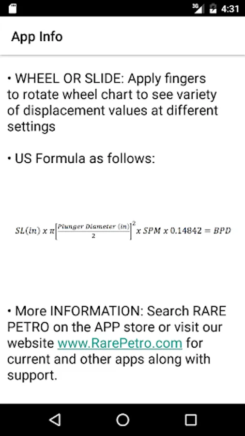 Quickly figure out your projected rod lift system displacement with this intuitive and easy to use wheel calculator. Modeled after a variety of hand-held physical wheel calculators this app is designed for quick calculation and reference of how differences between rod pump plunger size, strokes per minute and stroke length vary possible rod lift system displacement volumes. Whether in an office meeting where a rod lift technical question arises or on the well-site where a decision needs to be made quickly this can be a very useful quick reference tool.